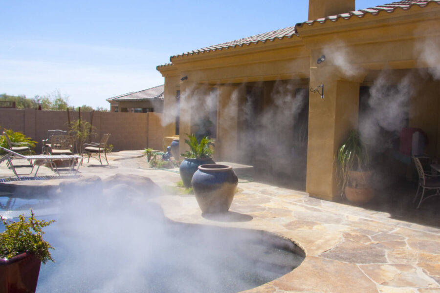 Drip irrigation is the standard for Coachella Valley landscapes and is required by CVWD regulations for most plantings. Zone your drip system so that shade plants under the patio cover receive 50–70% less water than full-sun zones. Weather-based smart controllers further optimize water use by adjusting schedules in response to real-time conditions.
