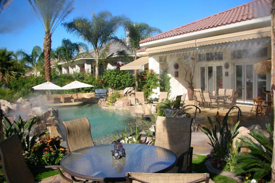 Misting systems have been standard at local restaurants, resorts, and golf clubs for years. Walk into any upscale outdoor dining area in Palm Springs or Palm Desert during summer, and you’ll find misting quietly keeping guests comfortable.